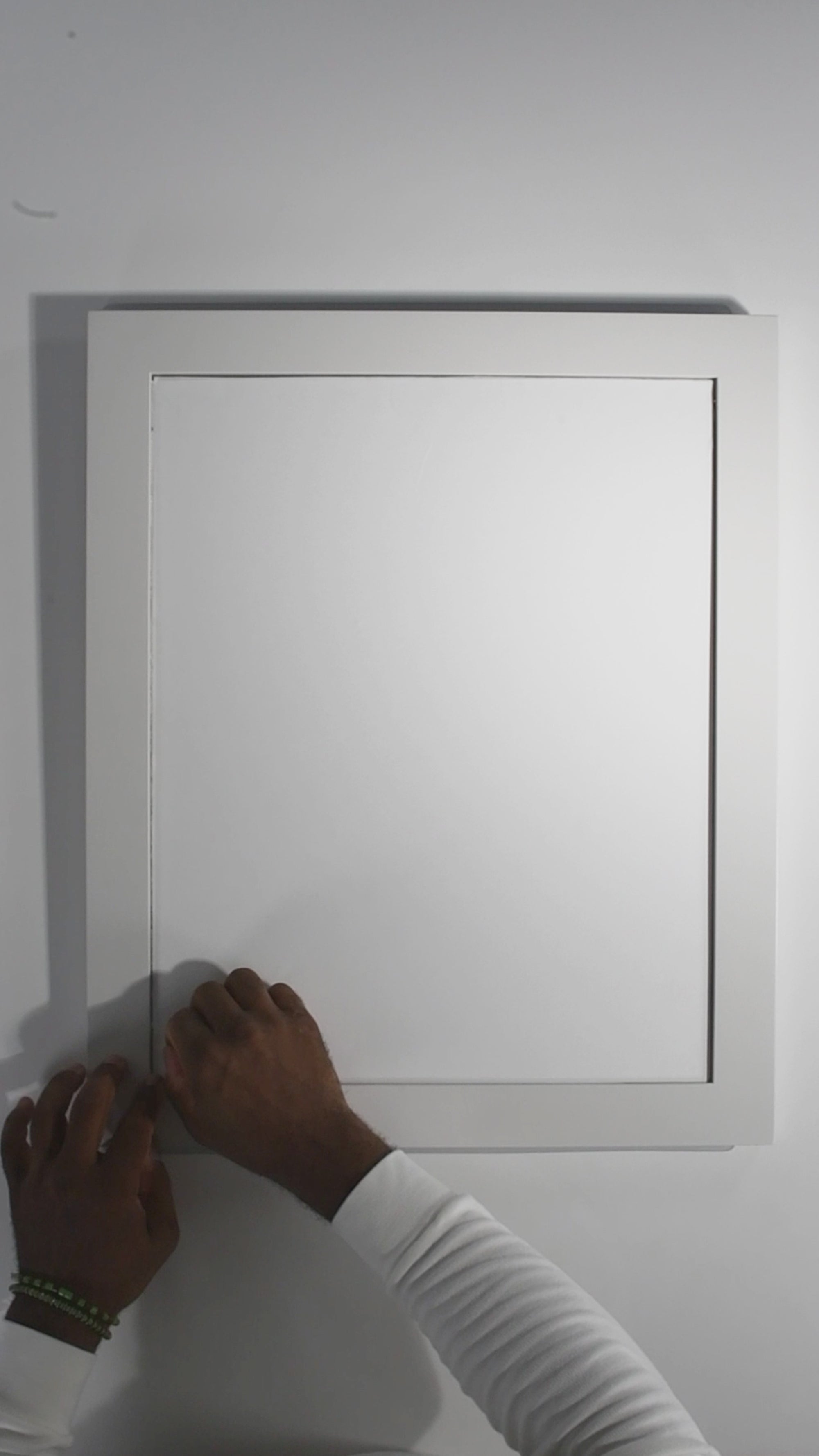 2. Line up puzzle sides up with frame sides, push the top of puzzle against frame top, then slowly slide puzzle onto adhesive.