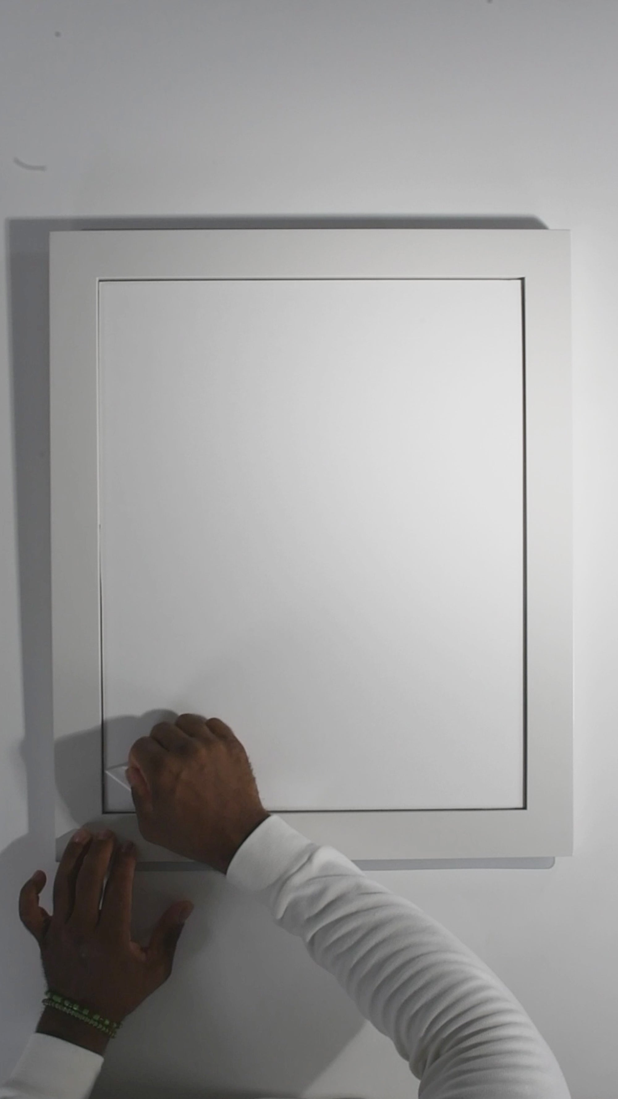 2. Line up puzzle sides up with frame sides, push the top of puzzle against frame top, then slowly slide puzzle onto adhesive.
